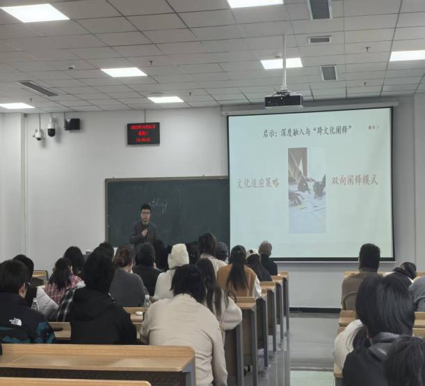 讲座开始,陈元博首先回顾了自己作为我校法语专业第一届学生的学习和成长经历,深情地表达了对母校的眷恋和感谢。随后,他通过列举跨文化交流中出现的误解事例导入了讲座的主题,并运用大量中法文一手资料,围绕中法、中欧交流史,从先驱者的视野:马可·波罗与异域建构;深根者的对话:利玛窦与文化适应;世界性关联:早期中法接触的多边格局;博弈者的书写:入华法国人的中国叙述;主动的言说者:赴法中国人与法国社会等五个方面探寻文化区域国别研究的方法和路径,通过文化适应、双向阐释等模式解读了中法交流过程中表现出的文化中心论、文化误读等现象,深入浅出地分析了文化在传播过程中从个体记忆到群体记忆,再到民族记忆的生成过程,启发法语专业学生培养“文化主体性”的自觉意识,树立“双向阐释”的文化自信,鼓励学生们成为未来“讲好中国故事”的文化交流和传播使者。